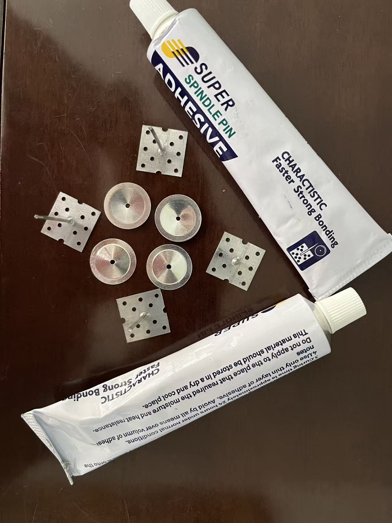 牙膏状:挤少量胶液于铝钉底座(薄而均匀,避免溢出)。